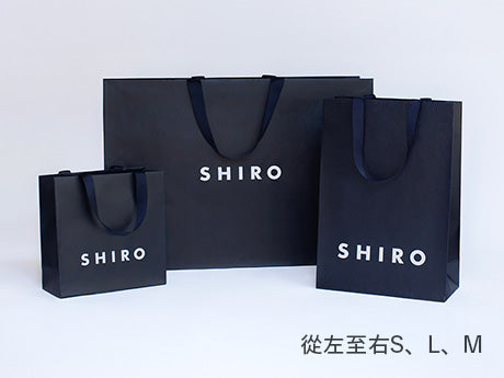 SHIRO提供3種付費禮物包裝選項:輕量又高強度的「禮物手提袋」、通常的紙質「購物袋」及「禮盒」。請依照送禮場合及需求選擇合適的包裝方式。