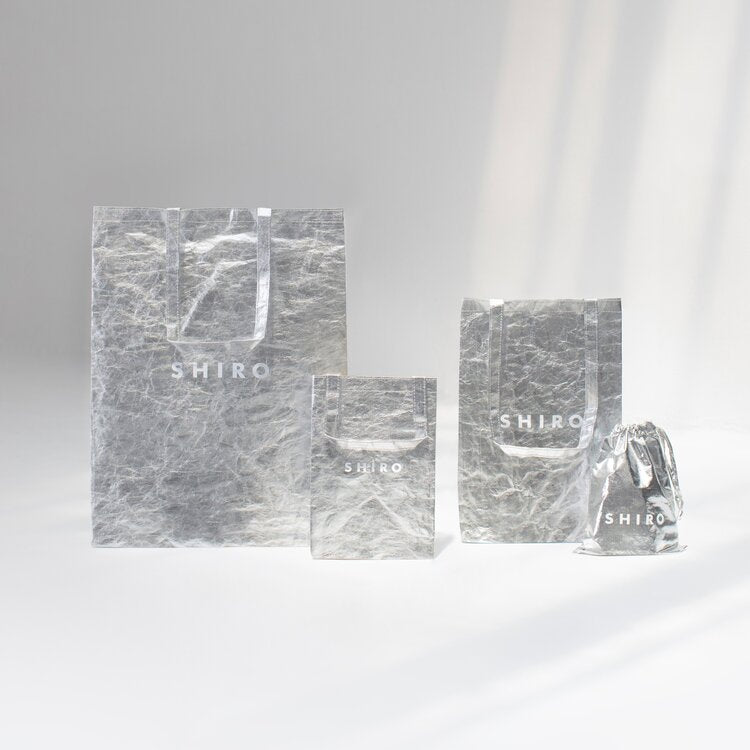 SHIRO 基於珍惜有限資源的理念,提供可重複使用的禮品包裝方式,包含「禮物手提袋」與「精緻束口袋」。